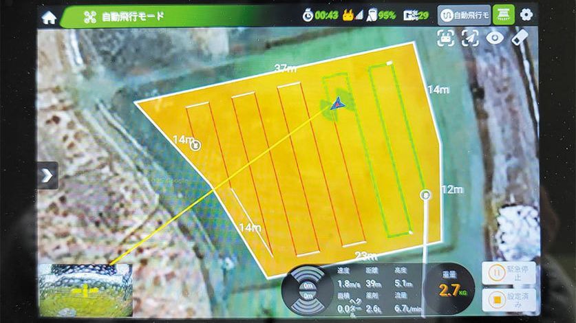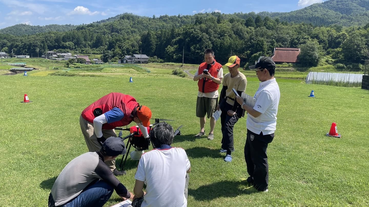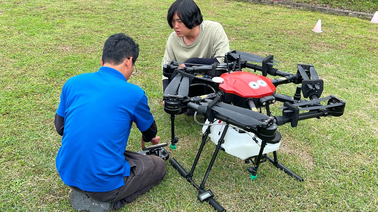 農業用大型ドローンを使用し、フライトトレーニングを行います。