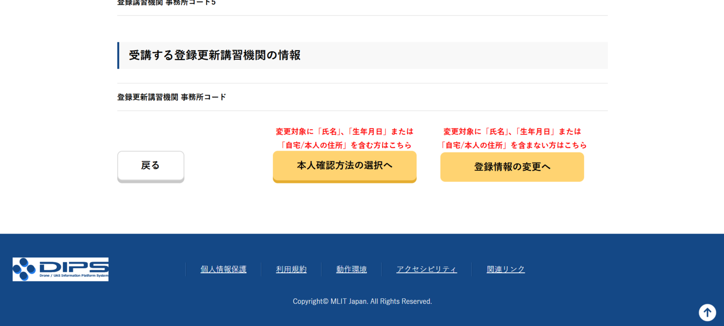 「登録更新講習機関 事務所コード」を入力する画面があります。